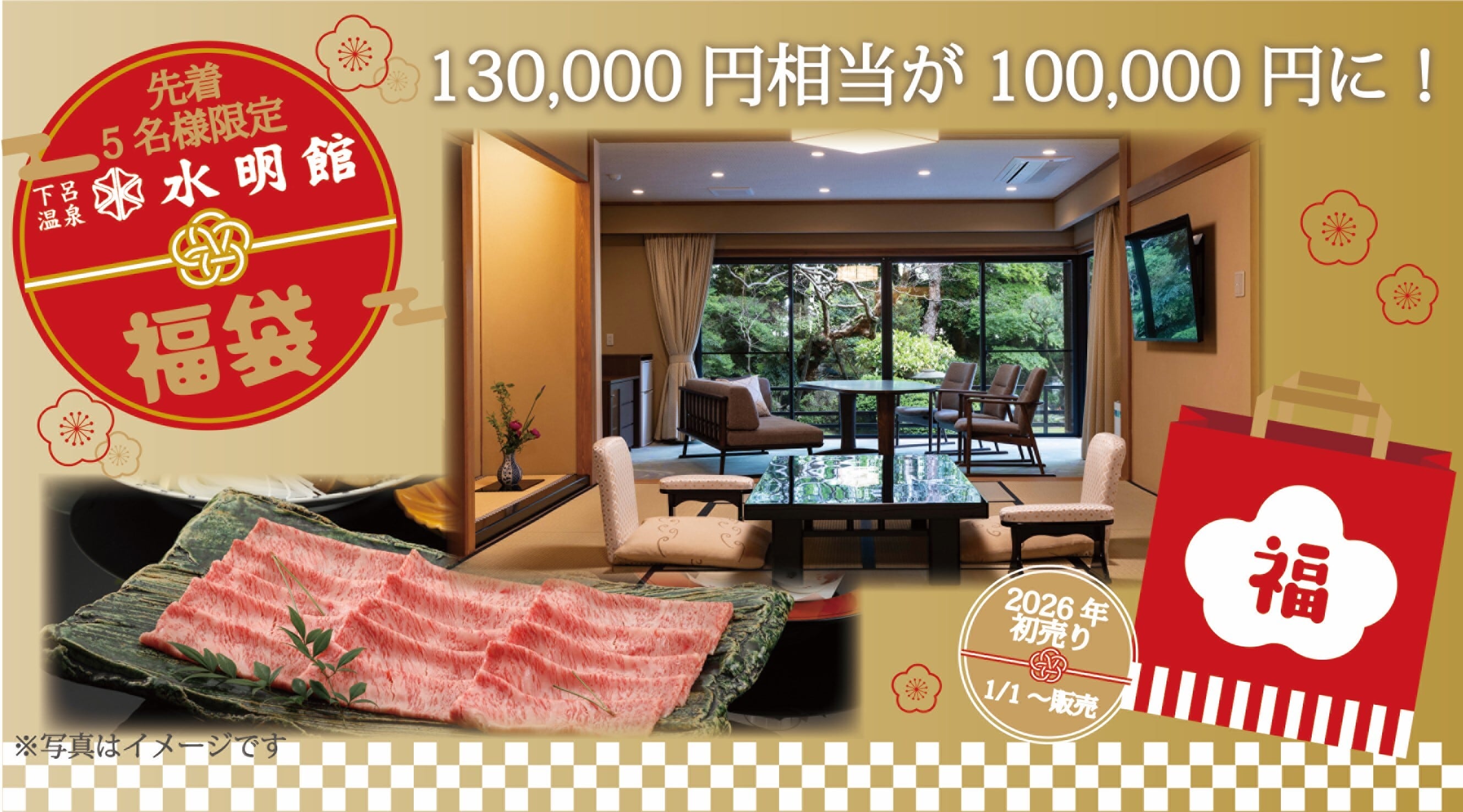 新年福袋 10万円【水明館の宿泊招待券と飛騨牛】5組限定